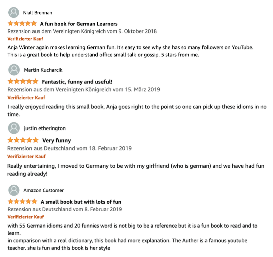 If you have even a tiny grasp of the German language, then "The 55 Best German Idioms and 20 Funniest Word Creations" will serve to improve your understanding in a fun and light-hearted manner.
